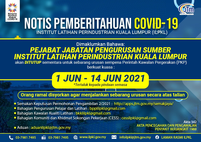 Portal Rasmi Institut Latihan Perindustrian Kuala Lumpur Notis Pengoperasian Ilp Kuala Lumpur Sepanjang Pkp 3 0